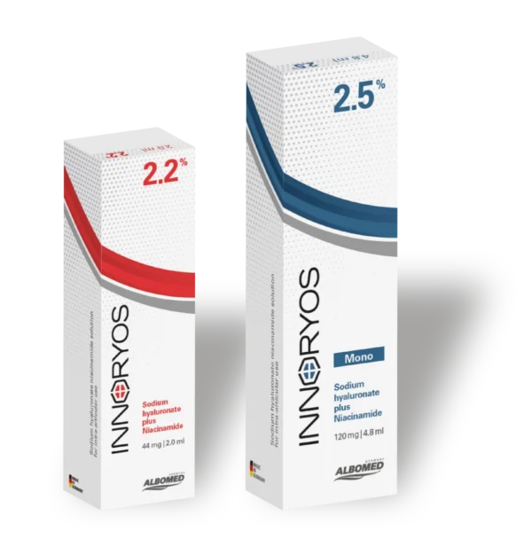 INNORYOS je moderní visco booster určený pro intraartikulární aplikaci. Kombinuje účinky kyseliny hyaluronové a niacinamidu (vitaminu B3) a představuje nový přístup k léčbě bolesti, ztuhlosti a omezené funkce kloubů.